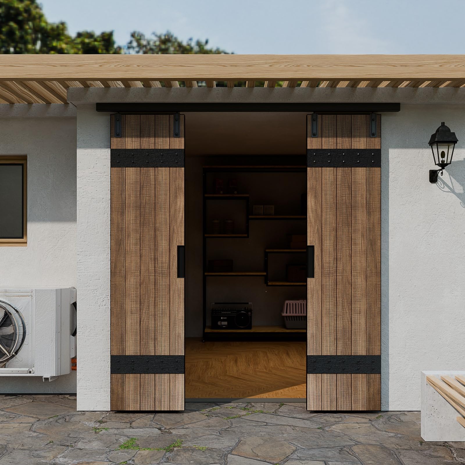 10FT/120'' Double Barn Door Hardware Sliding Box Rail Kit Ceiling Mount for Exterior Interior Door Heavy Duty Black No Door