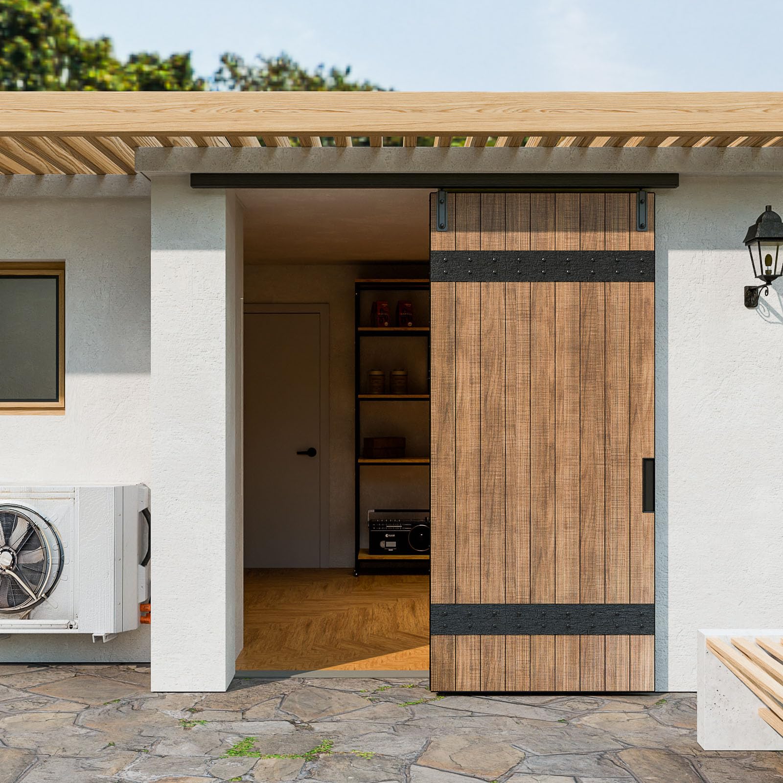Ceiling Mount Box Rail Sliding Barn Door Hardware Kit for Exterior Interior Single Door Heavy Duty Black--No Door Panel