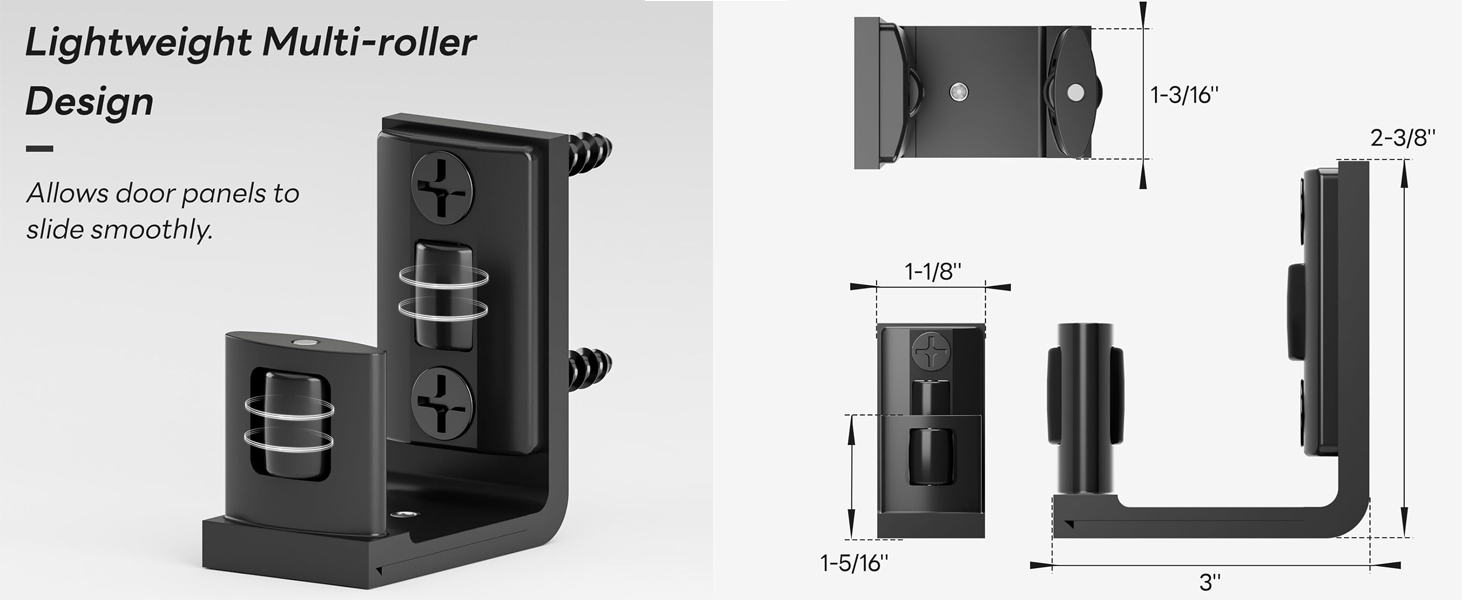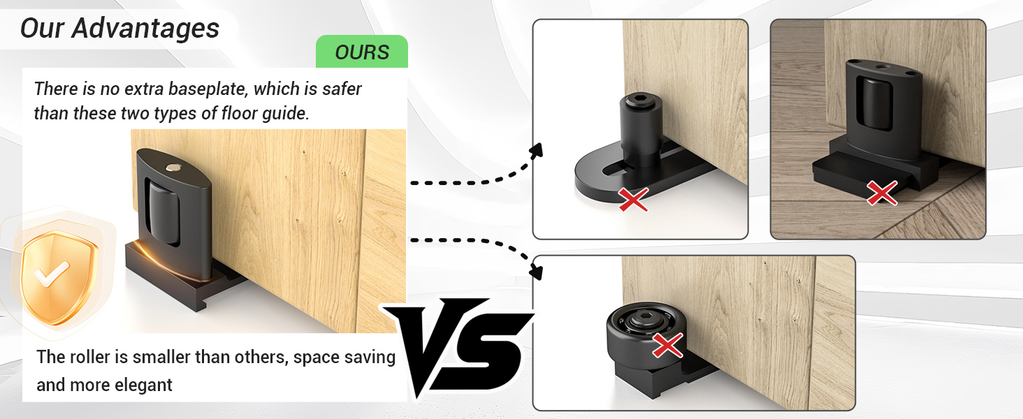- 【Compact Concept】The floor guide, designed to be more space-saving and lightweight, and the dual-sided concealed small pulleys ensures smooth sliding while protect your door panel.