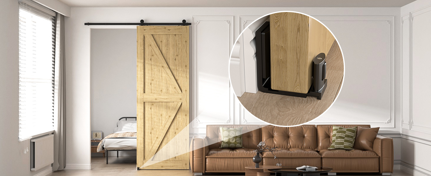 Click to see full view 4+ VIDEO Sliding Barn Door Floor Guide 2 Packs Bottom Adjustable Roller Guides Wall Mounted Black