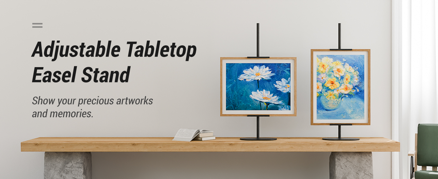 - Universal Frame Compatibility: Tabletop easel can accommodates 90% standard frame widths (1/4" to 1.3" thick); single solution for displaying different photo and art without multiple frame holder stands