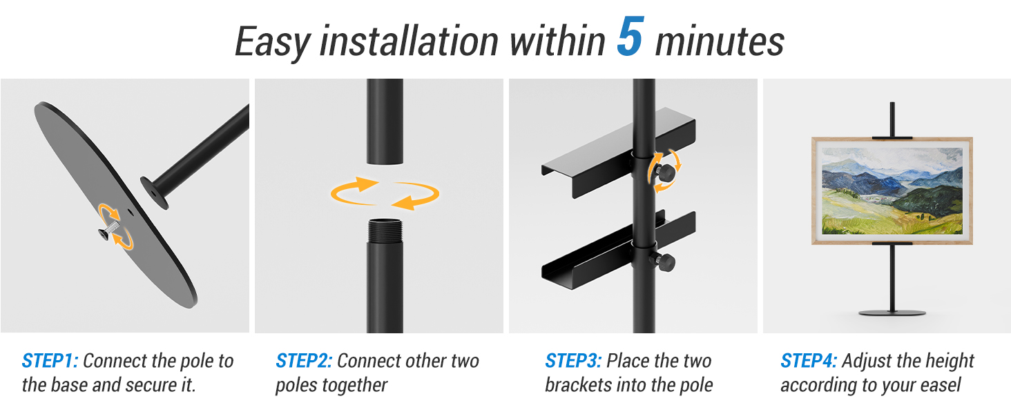 - Height Adjustable Picture Frame Stand: Supports frames up to 30" tall for ideal display height; durable hard metal construction with waterproof and rust proof surface coating maintains stability for years